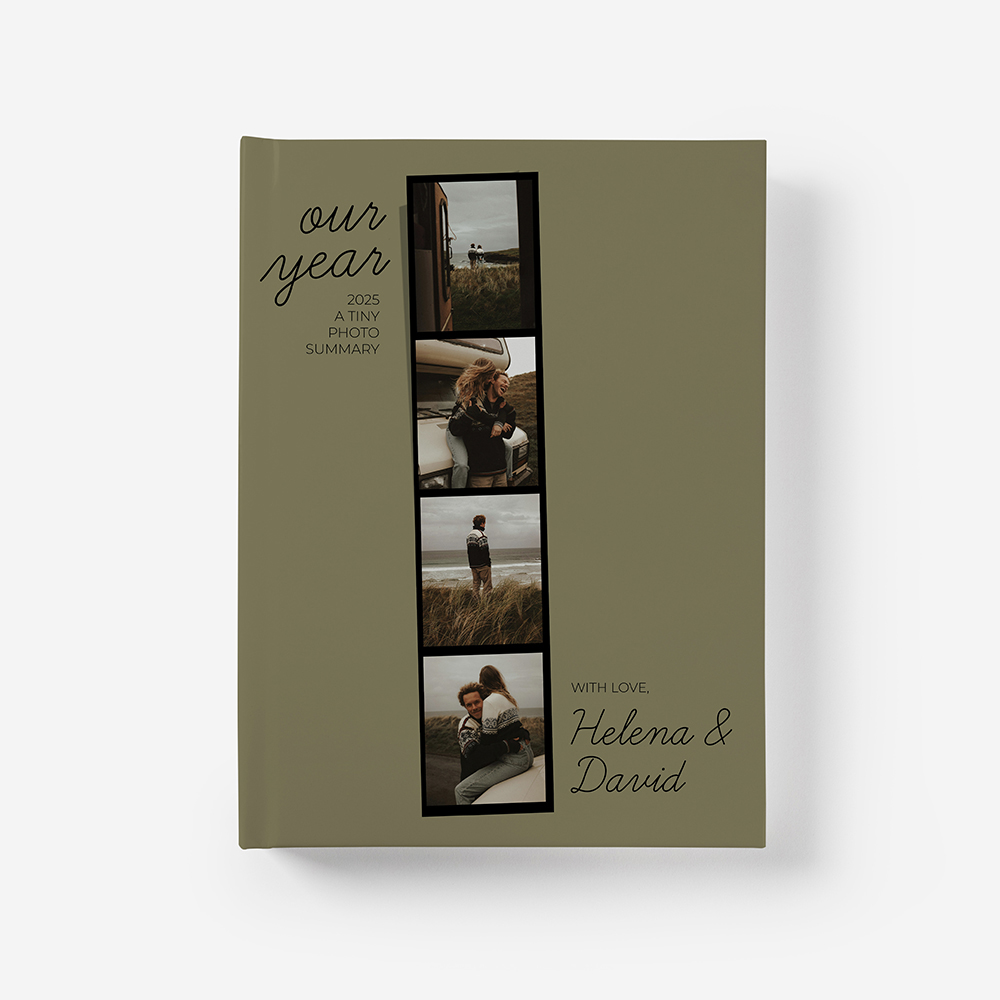 A capa rígida em cartão duro oferece proteção adicional e um acabamento elegante ao teu álbum.