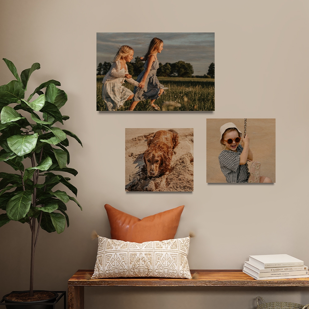 Os Quadros em Madeira são uma excelente opção para quem adora espaços com uma decoração rústica, apesar de funcionarem muito bem em qualquer tipo de decoração, devido à neutralidade da madeira. São ideais para dar uma nova vida tanto às tuas fotos favoritas como às paredes lá de casa. Uma parede decorada com quadros dá de imediato outro aspeto a qualquer área da casa. Para além de que ao decorares a tua casa com as tuas melhores memórias irás ter a oportunidade de as reviver várias vezes. Não hesites e destaca os teus momentos especiais. Com o nosso Editor online, imprimir fotografias em quadros para a casa é fácil, rápido e cómodo. Basta selecionares o quadro, fazeres upload da tua fotografia preferida, personalizares a imagem, selecionares uma morada para a entrega e finalizares a tua encomenda no Editor.