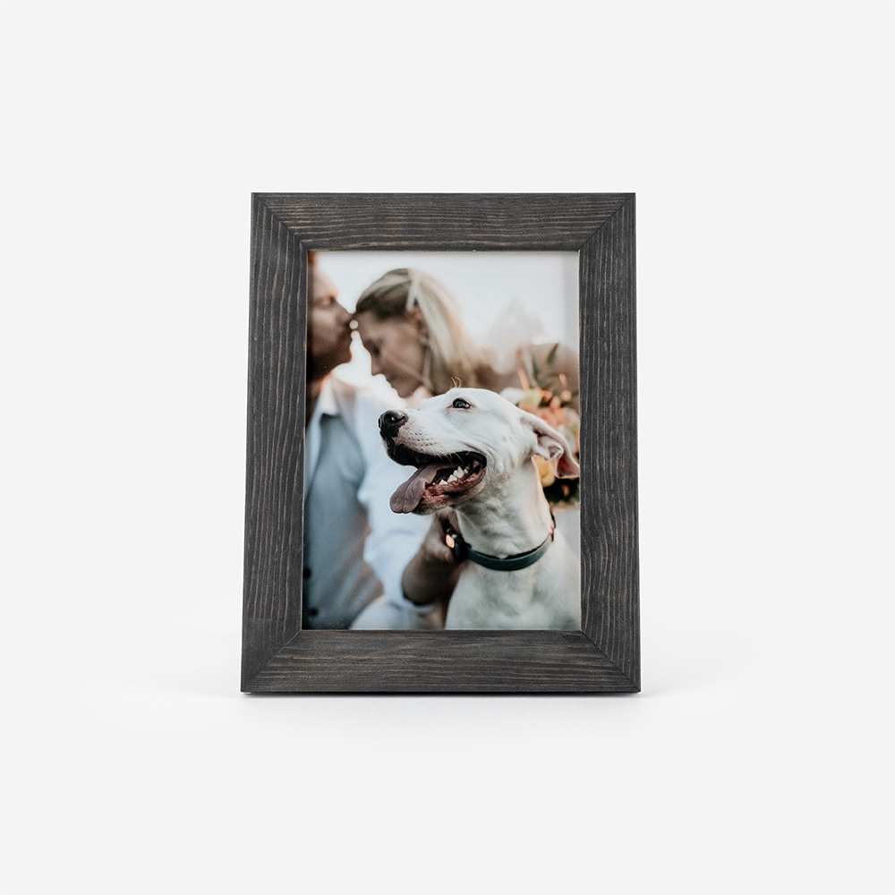 Moldura de alta qualidade, fabricada num material com aspeto concreto, garantindo durabilidade e um acabamento perfeito para destacar as tuas fotos.
